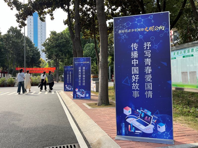 “个人信息防泄露,谣言蜚语莫倾听”“向上向善共营造,上网用网要文明”……在活动现场,随处可见写有《新时代青少年网络文明公约》的标语。(供稿:河南省文明办 大河网 记者李东宝)