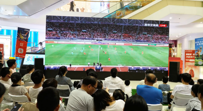6月28日,鹽都萬達(dá)廣場(chǎng)的一樓中庭化作沸騰的綠茵戰(zhàn)場(chǎng),300平方米的超清巨幕上清晰展現(xiàn)球員們的每一次拼搶、每一腳射門,現(xiàn)場(chǎng)座無虛席,球迷們目不轉(zhuǎn)睛緊盯賽況。隨著比賽進(jìn)入白熱化,助威聲、歡呼聲如浪潮翻涌,沉浸式觀賽體驗(yàn)將賽場(chǎng)的熱血與激情完美復(fù)刻。