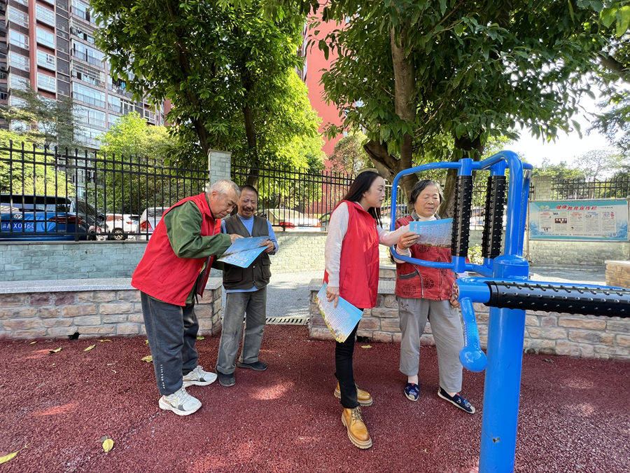 王昌元和社区工作人员一起做宣传(资料图)。(中共重庆市綦江区委宣传部供图)
